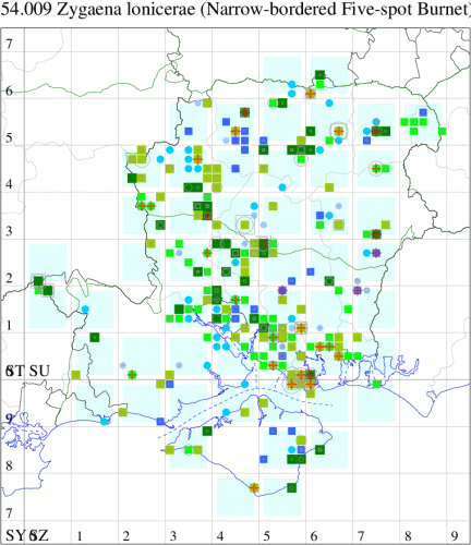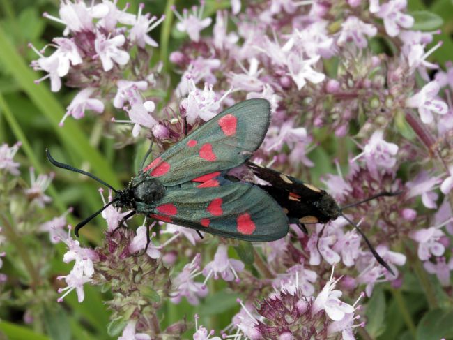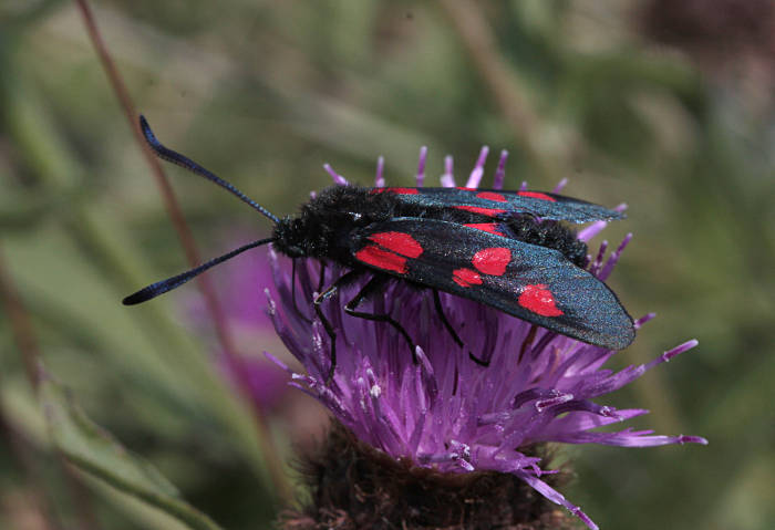 latomarginata common on grassland, chalk downland and sea cliffs throughout much of England (but largely absent from the south-west) and southern Wales. In Hampshire and on the Isle of Wight far more common and widespread than the Five-spot Burnet, and colonies of 'five-spot burnets' encountered off the chalk are more than likely to be this species. Subspecies