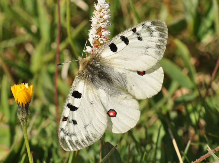 Local in mountains, alpine meadows and rocky areas; 1800-2200 m throughout much of Alps. An individual was found in mountains near Bangor in 1887, either a deliberate release or accidentally introduced on alpine plants. Not recorded in Hampshire or on the Isle of Wight to date. Wingspan 60-80 mm. Larva feeds on Yellow Saxifrage.