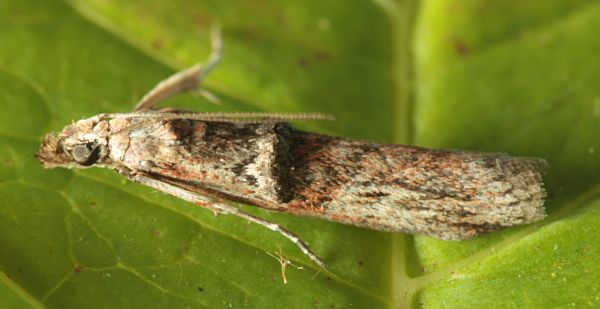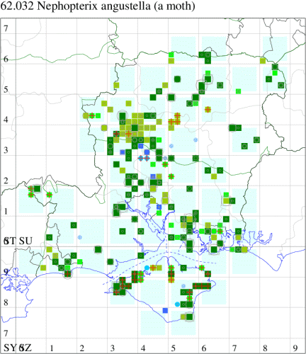 Local and increasing in hedgerows, scrub and gardens throughout southern England. In Hampshire and on the Isle of Wight numbers recorded on the county database have increased significantly since the mid 1990s, with an average of five annual records between 1995 and 2002, increasing to more than 20 annual records between 2003 and 2005, and an unprecedented 80 in 2006: this was a good year for migrants, and it is certain that the resident population is strengthened by arrivals from the continent at times. Wingspan 20-25 mm. The bar of blackish raised scales from dorsum to shortly beyond middle of wing render the species unmistakable [Goater]. Larva feeds within berries of Spindle, perhaps increasingly making use of garden forms, such as Euonymus japonicus, over-wintering as a pupa.