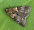 Common in oak and other deciduous woodland and areas with scattered oak-trees throughout England. In Hampshire and on the Isle of Wight fairly frequent in old oak woodland, scarce away from that biotope. Wingspan 20-25 mm. Forewing markings similar to those of