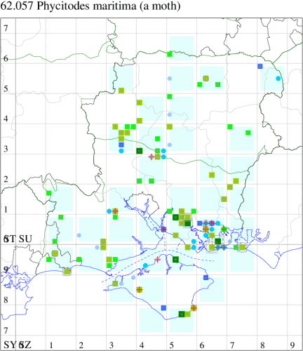 Phycitodes species, and has been bred on several occasions from the heads of Common Ragwort, from both coastal and inland localities - despite its specific name, it is not tied to the coast. Wingspan 18-22 mm. This species is intermediate in size between