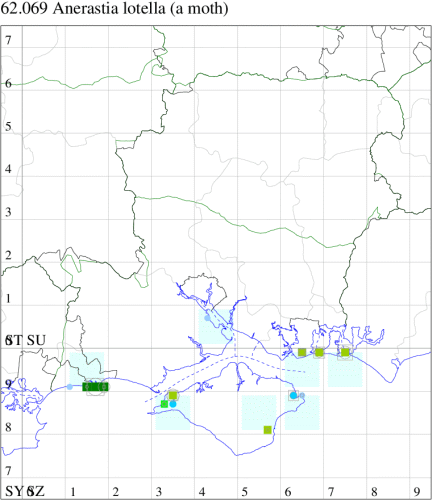 Nationally scarce (Nb) on coastal sandhills in England, Wales, south Scotland and Ireland, and inland on the Breckland sands of Norfolk and Suffolk. In Hampshire confined to sand dunes at Hengistbury Head and on Hayling Island, especially at Sandy Point and on Sinah Common. On the Isle of Wight, confined to the extreme east and west of the Island. Wingspan 19-27 mm. This species resembles certain crambids, but the more rounded termen and sandy coloration distinguish it; may also be confused with
