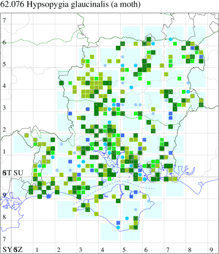 Common around sheds and farm buildings, in gardens, hay-stacks, thatched roofs and bird nests throughout southern England. Widespread and common in Hampshire and on the Isle of Wight. Wingspan 23-30 mm. Larva feeds on decaying vegetable matter such as hay, and on detritus in bird nests.