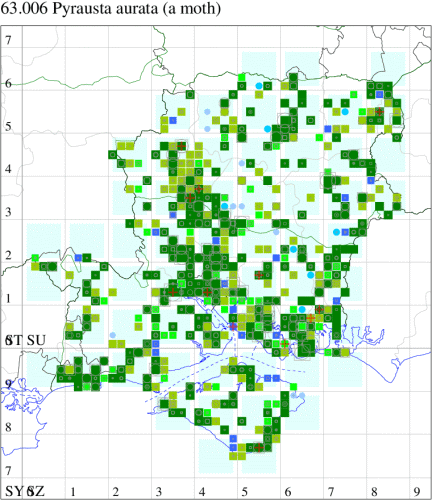 Local, on chalk downland and open, grassy areas, discontinuously throughout much of England, Wales and southern Scotland. In Hampshire and on the Isle of Wight, sometimes abundant on the downs, but also in gardens amongst cultivated mint. Wingspan 15-18mm. Flies by day and night. The main confusion species is
