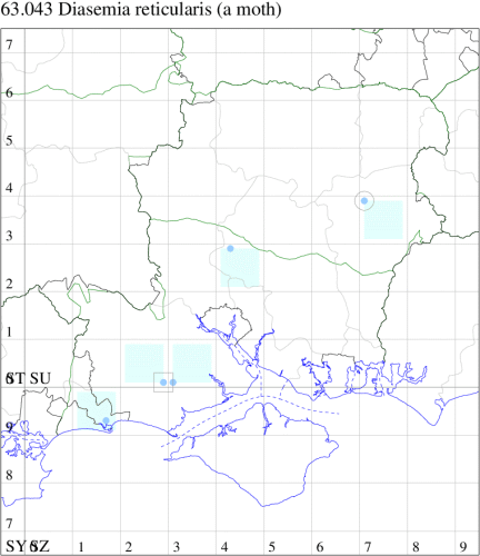 Rare immigrant to southern England from southern Europe, arriving in some years in sufficient numbers to breed. In Hampshire not recorded since 1958. Not recorded from the Isle of Wight to date. Wingspan 18-22 mm. The most likely confusion species is