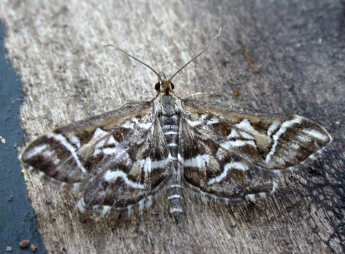 D. reticularis can always be recognised by the postmedian lines of fore- and hindwing, which curve or bend strongly into tornal region [Goater]. Larva feeds on withered leaves of herbaceous plants such as Greater Plantain, Chicory, Hawk's-beard and Ox-tongue.