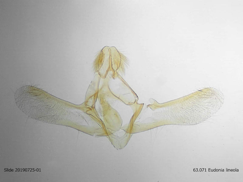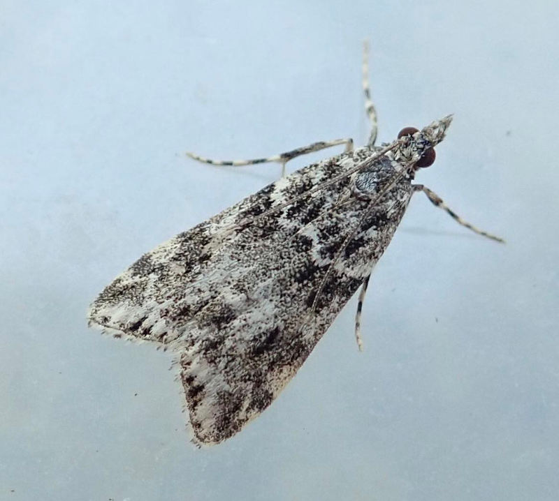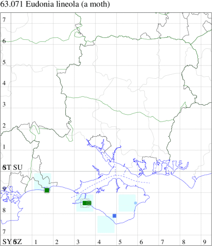 A species with a widespread though generally coastal distribution, this species is however quite local and relatively uncommon, favouring the coastal counties of eastern and southern Britain, Guernsey and the Burren. Compared to other 'Scoparia', it is a quite well-marked moth, having contrasting black and white markings, sprinkled with a subtle greenish-brown tone. Recorded very infrequently in the Isle of Wight, and recorded for the first time in Watsonian Hampshire (VC11) at Hengistbury Head (politically in the county of Dorset), in 2024, where it is probably resident. Wingspan 18-20 mm. Larva feeds on various lichens.