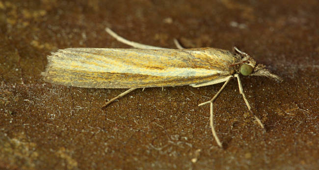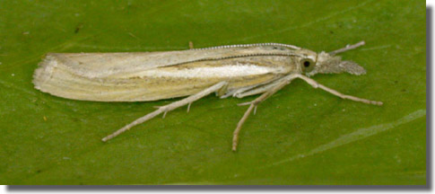 A. tristella [Goater]. Larva feeds within lower stems of various grasses, living within a silken gallery at the base of the plant.