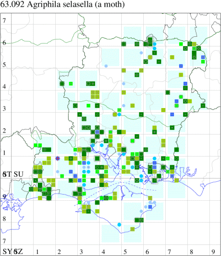 Local in saltmarshes throughout the British Isles, except for northern Scotland. In Hampshire and on the Isle of Wight widespread and common. Wingspan 22-30 mm. Can be confused only with certain forms of