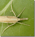 A. selasella [Goater]. Larva feeds on stems and leaves of Common Saltmarsh-grass and Sheep's-fescue, living within a silken gallery.