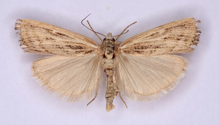 Rare (proposed as a future Red Data Book species) on coastal sand-dunes in south-eastern England. Not recorded in Hampshire or on the Isle of Wight to date. Wingspan 24-30 mm. Though variable in the amount of fuscous irroration, this is an unmistakable species: the chequered fringe distinguishes it at once [Goater]. Larva feeds within roots of various grasses, living within a silken tube or tent.