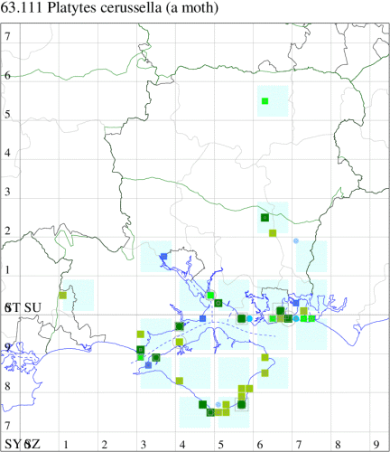 Local on coastal shingle and sandy beaches throughout much of southern England, and inland on dry sandy heaths in Breckland. In Hampshire and on the Isle of Wight locally common on coastal shingle. Wingspan male 12-15 mm, female 10-13 mm. The smallest crambid: general appearance of male not unlike