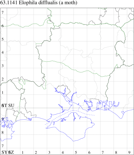 Naturalised in aquatic nurseries through accidental introduction in aquatic plants from the Far East. First discovered in Britain at Enfield, Middlesex in 1977. Not recorded in Hampshire or on the Isle of Wight to date. Wingspan male 11-13 mm, female 13-18 mm. The commonest of several related species established through the horticultural trade, of which the main confusion species are