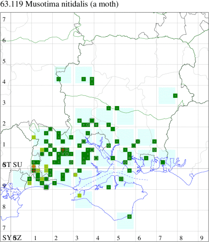 First trapped at Merritown Heath, Dorset on 11 August 2009 by Mike Jeffes and David Evans, and identified at the BENHS Exhibition that year by Martin Honey (BMNH) as the present species, a native of New Zealand which feeds on various fern species. Certainly introduced by the horticultural trade, since 2013 it has since spread widely from the original location across southern England, but also as far as East and West Sussex, and Harlow in Essex. It reached the Isle of Wight in October 2015 (interestingly, this came before it was seen in Hampshire 'proper', when one was found in Sandleheath, New Forest in November 2016; there were no further Wight records until 2022). By 2021 it was reported as abundant in places in the New Forest around bracken, and reached as far east as Fareham in 2023, this year also seeing the first North Hampshire with one in Andover in October.