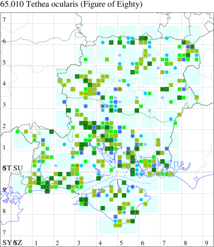 Please take care when entering records of Figure of Eighty or Eight that the correct species is selected: the present species is on the wing from May into July. Larva feeds on Aspen and Poplar, over-wintering as a pupa.