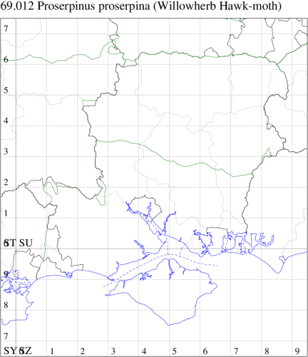 Lime Hawk-moth Mimas tiliae. Larva feeds on Rosebay Willowherb, Broad-leaved Willowherb, Great Willowherb, Hoary Willowherb, Common Evening-primrose and Purple Loosestrife, no evidence of breeding in the UK.