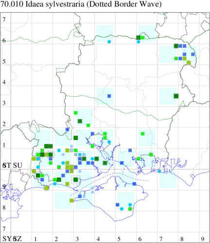 Satin Wave I. subsericeata, which usually lacks terminal dots;