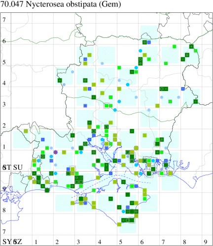 Immigrant from southern Europe, appearing mainly in southern Britain, with occasional records north to the Orkneys, in some years arriving in sufficient numbers to breed. In Hampshire and on the Isle of Wight a common immigrant, which is widely distributed throughout in some years. Wingspan 18-21 mm. Highly sexually dimorphic. Larva feeds on the leaves of various herbaceous plants, although the exact plant species utilised in the United Kingdom is unknown, but unable to over-winter in significant numbers.