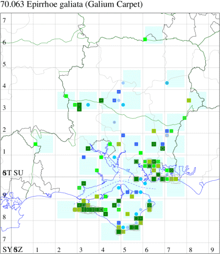 Large Twin-spot Carpet Xanthorhoe quadrifasiata, with which shares concave costa. Larva feeds on Lady's Bedstraw, Hedge Bedstraw and Heath Bedstraw, over-wintering as a pupa.