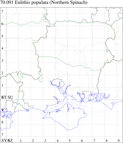 Dark Spinach (Pelurga comitata), which see for differences. Larva feeds on Bilberry, over-wintering as an egg.