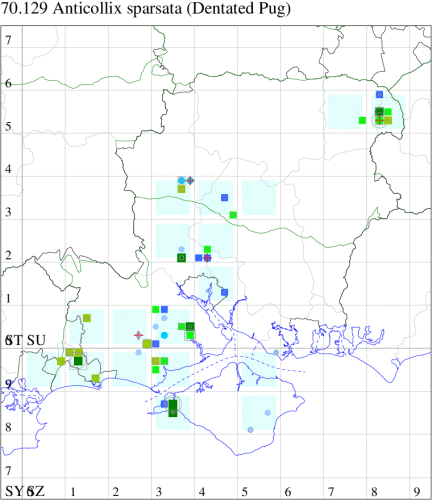 Brown Scallop Philereme vetulata than any of the other pug species. Larva feeds on flowers and leaves of Yellow Loosestrife, over-wintering as a pupa.