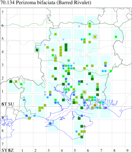 Local on chalk downland and other habitats on calcareous soils, including woodland rides and waste ground, in England, Wales and southern Scotland. In Hampshire and on the Isle of Wight found wherever the foodplant grows, which is mainly on the chalk, with occasional wanderers elsewhere. Wingspan 20-26 mm. Fairly unmistakable. Larva feeds on seeds of Red Bartsia, over-wintering as a pupa.