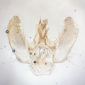 Recent colonist and immigrant in southern England and on the Channel Islands, predominantly coastal. In Hampshire this southern European species was first recorded by John Langmaid in his Southsea trap on 29 June 1995, with another on 30 July that year. Exactly a year later than that last sighting, larvae were discovered in good numbers on Tamarisk on Sinah Common, Hayling, and in 1997 the first adults were captured on the Isle of Wight. Since then, it has become somewhat frequent at light around the coast of the Isle of Wight and coastal Hampshire from Southampton to Hayling, but remains rare to the west of the Test. Larvae remain confined to Hayling on the mainland, but more widespread on Wight. In 2021, there was a surprising sighting on an individual to a light trap in the north-east of Hampshire. Wingspan 13-17 mm. The most likely confusion species is
