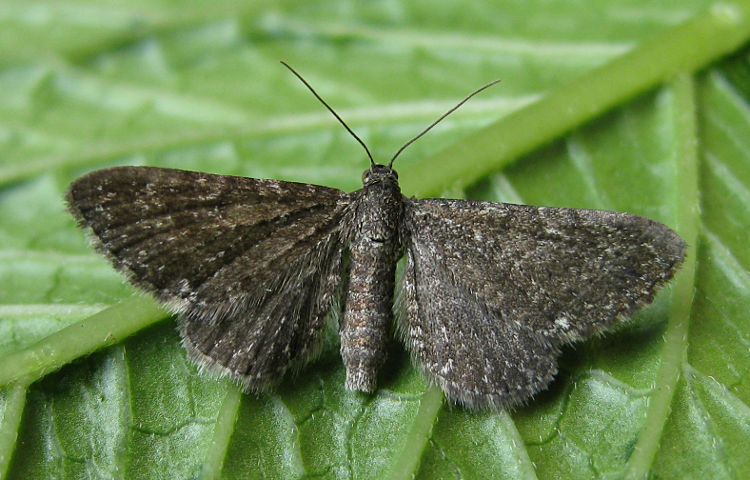 This small, brown, pug is scattered locally across central and northern England, Scotland and parts of Ireland, in fens, marshes, damp meadows, sand-dunes and waste ground. Not recorded in Hampshire or on the Isle of Wight to date. Wingspan 14-16 mm. Fairly unmistakable. Larva feeds on flowers and seeds of Field Mouse-ear, over-wintering as a pupa.