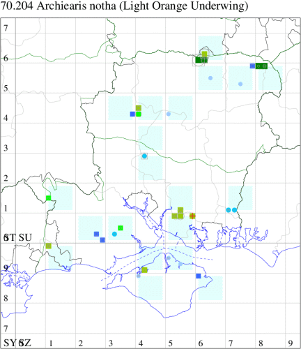 Nationally scarce (Nb) in ancient woodland and open woodland in parts of southern England. In Hampshire and on the Isle of Wight seems to be present wherever Aspen is established, however in places such as Crab Wood, some of the few trees have been felled to the detriment of this and other local species. Wingspan 33-36 mm. The most likely confusion species is Orange Underwing A. parthenias, which see for differences. Larva feeds on Aspen, over-wintering as a pupa.