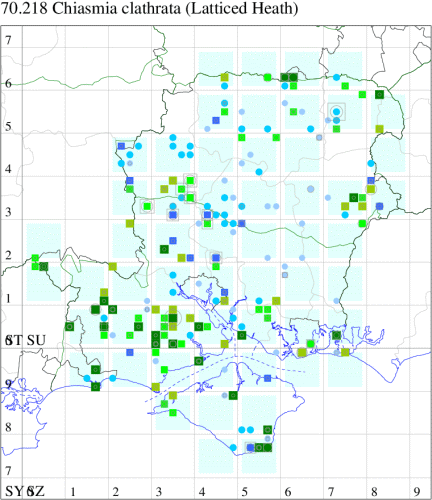Common in farmland, gardens, calcareous grassland, acid heathland and moorland throughout most of the British Isles, a species of conservation concern under the UK Biodiversity Action Plan. In Hampshire and on the Isle of Wight quite common on the chalk and in waste places with clover, and also found in clover crops. Wingspan 26-32 mm. Flies both by day, in warm sunshine, and at night. Although distinctive, it has been confused with