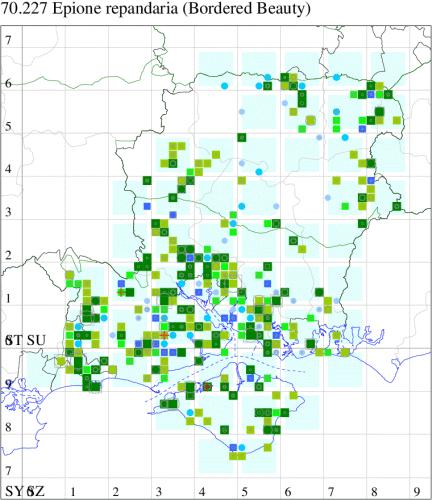 E. repandaria. Larva feeds on Sallow, Black Poplar, Alder and Hazel, over-wintering as an egg.