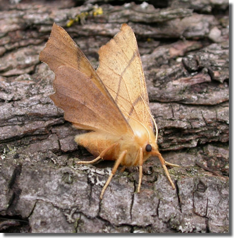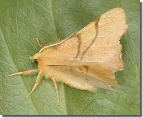August Thorn E. quercinaria, which has the antemedian fascia (the line nearest the base of the wing) acutely angled at the costa (almost straight in September Thorn). Larva feeds on Oak, Lime, Birch and Beech, over-wintering as an egg.