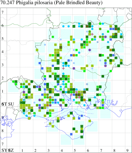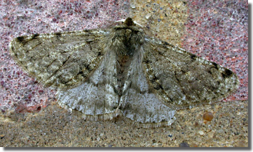 Common in broad-leaved woodland, gardens, and areas with scattered trees throughout the British Isles. Widespread and common in Hampshire and on the Isle of Wight. Wingspan male 45-50 mm, female wingless. Males somewhat similar to