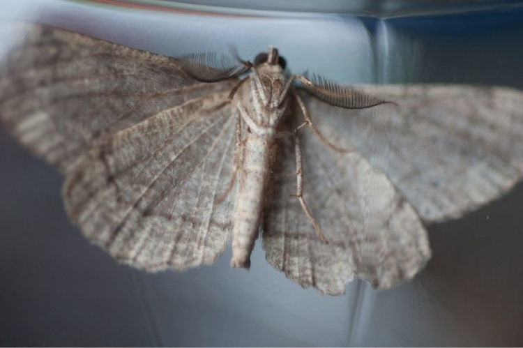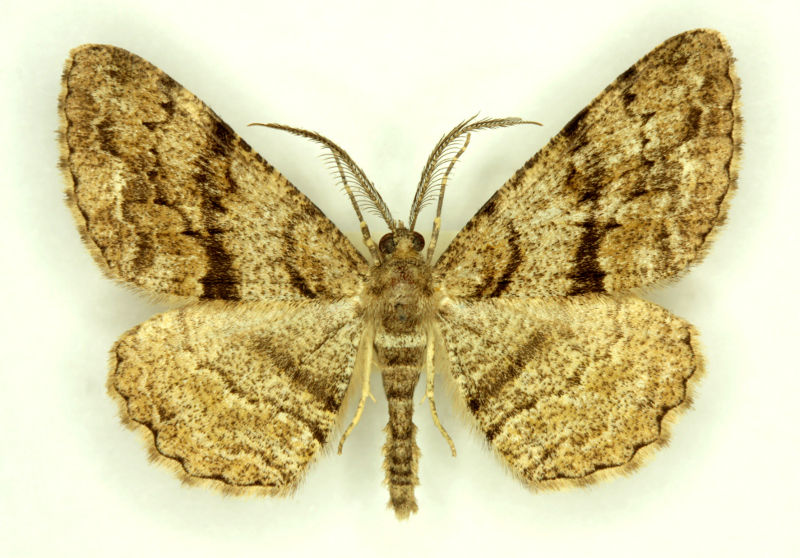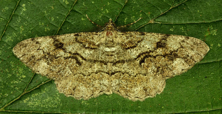 Lydd Beauty P. ilicaria, which has postmedian fascia on hindwing parallel with dorsum (the fascia meets the apex on Feathered Beauty). Larva feeds on Norway Spruce.