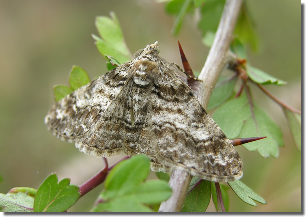 Nationally scarce (Na) on damp heathland in southern England (Hampshire and adjoining counties), and in bogs and mosses in Scotland and northern England (ssp. bowesi). In Hampshire a speciality of the New Forest, where the moth can be found resting on the small pines on the heaths during May. Not recorded from the Isle of Wight to date. Wingspan 36-42 mm. Fairly distinctive, with very straight costa and, often, a small pale elongated discal spot. Larva feeds on Silver Birch, Downy Birch, Bilberry, Bell Heather and Cross-leaved Heath, over-wintering as a pupa.
