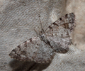 Brussels Lace Cleorodes lichenaria, which has bolder, more strongly dentate subterminal fascia. Larva feeds on Downy and Silver Birch, and Alder, over-wintering as a pupa.