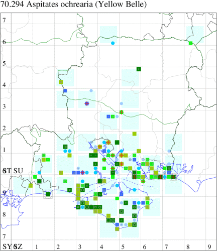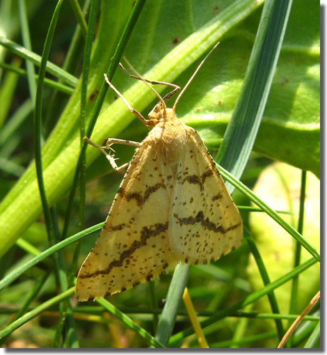 Straw Belle Aspitates gilvaria, but Yellow Belle has a more rounded forewing and more distinct antemedian fascia. Larva feeds on Sea Wormwood, Hare's-foot Clover, Smooth Tare, Bird's-foot Trefoil, Common Restharrow, Wild Carrot and Beaked Hawk's-beard.