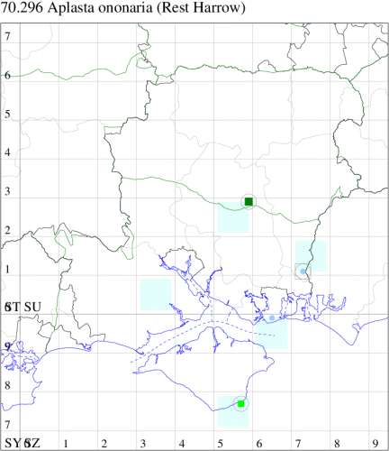 A rare Red Data Book species, on calcareous grassland and sand-dunes in parts of Kent, predominantly coastal, a priority species under the UK Biodiversity Action Plan. Also occurs as a vary rare immigrant from mainland Europe, appearing sporadically on the southern coast of England. In Hampshire there are just four records, the most recent being at Southsea in July 1959 and Rowlands Castle in July 1962. On the Isle of Wight, recorded for the first time at Ventnor in August 2005. Wingspan 26-31 mm. Unmistakable. Larva feeds on Common Restharrow.