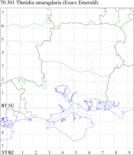 Extinct in the British Isles, formerly in saltmarshes in parts of Kent and Essex, predominantly coastal. The last Essex colony died out in 1985 and the last wild Kent record was in 1991. Unlikely to be recorded in Hampshire or on the Isle of Wight. Wingspan 33-35 mm. Larva feeds on Sea Wormwood.