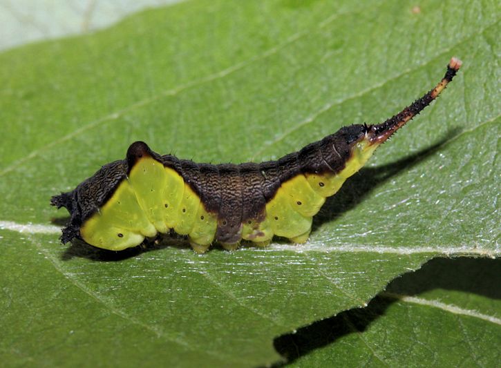 Common in gardens, hedgerows, open woodland, moorland and scrub, throughout the British Isles, but rare at high altitude. In Hampshire and on the Isle of Wight, widespread, but seen only in small numbers. Wingspan 62-80mm. Amongst resident species, unmistakable, although the very similar Feline Cerura erminea has been recorded twice on the Channel Islands. Larva feeds on Black Poplar, White Poplar, Aspen and Goat Willow, over-wintering as a pupa.