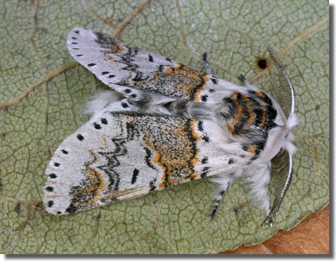 F. bifida the outer margin of the median fascia is black and more evenly curved (MBGBI Vol 9). Larva feeds on Grey, Goat and White Willow, White and Black Poplar, and Aspen, over-wintering as a pupa.
