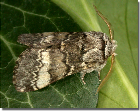 Dusky Marbled Brown Gluphisia crenata, an extremely rare immigrant, which see. Larva feeds on Pedunculate, Sessile and Turkey Oak, over-wintering as a pupa.