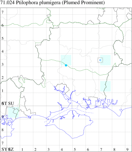 Nationally scarce (Na) on chalk downland in parts of south-eastern England, from Dorset to Sussex. In Hampshire last reported in November 1984, from Crawley in vice-county 12, but it flies very late in the season and requires a concerted effort to locate; considered likely to persist on the chalk in the Alton area, and perhaps elsewhere. Not recorded from the Isle of Wight to date. Wingspan 35-44 mm. Variable and rather nondescript for a 'prominent', but males can be recognised by their strongly bipectinate antennae. Larva feeds on Field Maple, over-wintering as an egg.