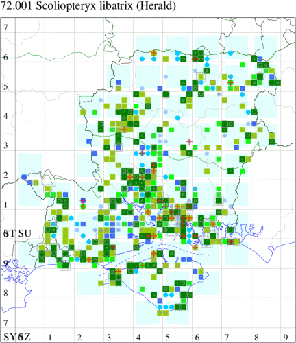 Common in broad-leaved woodland, fens, heathland, parks and gardens throughout much of the British Isles. In Hampshire and on the Isle of Wight widespread and generally common, and comes freely to sugar, and also to light before and after hibernation; hibernating moths can be found in sometimes large groups in cellars, garages and outhouses. Wingspan 46-52 mm. Unmistakable. Larva feeds on Grey Willow, Creeping Willow, Aspen, White Poplar and Black Poplar; often found on bushes of sallow, willow and poplar in late summer.