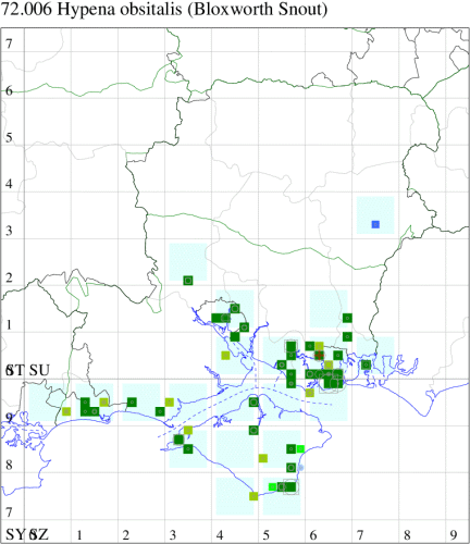 A rare Red Data Book species, on sea cliffs, grassy slopes and undercliffs in parts of south-western England. First recorded at Bloxworth, Dorset, in September 1884, remaining a very scarce migrant until 1990, when a small population was discovered at Torbay, Devon. The species soon colonised the south coast from the Lizard in Cornwall to Purbeck in Dorset. On the Isle of Wight, since 2003, increasingly recorded hibernating in small numbers in outhouses and caves, and at light, and is undoubtedly now established on the south-east coast of the Island. In Hampshire recorded in the mid-1990s in both vice-counties, and again in 2009 at Southsea; since this time it has dramatically increased in status in the Portsmouth area: there were 23 records in 2013 and 29 in 2014. Wingspan 29-32 mm. Larva feeds on Pellitory-of-the-wall.