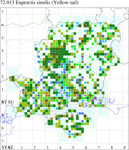 Common in hedgerows, woodland, scrub and gardens throughout England, increasingly also in Scotland. Widespread and common in Hampshire and on the Isle of Wight. Wingspan male 35-42 mm, female 37-45 mm. The main confusion species are