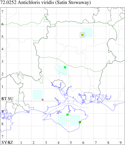 Antichloris eriphia). Two further records have been accepted, in Winchester in 2001 and from Fyffes warehouse in Basingstoke in 2003; another bred from a banana by the author in 2014 probably originated from the same place. Two records from the Isle of Wight have not been determined and may relate to this species or the closely related