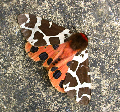 Reasonably common, but has declined drastically in recent years, in gardens, water meadows, marshes, fens, sand-dunes and open woodland throughout the British Isles, a species of conservation concern under the UK Biodiversity Action Plan. In Hampshire and on the Isle of Wight still widespread, but present only in small numbers. Wingspan 50-78 mm. Variable, but generally unmistakable. Larva feeds on various herbaceous plants, including Stinging Nettle, Broad-leaved Dock, Greater Burdock and Lesser Burdock.