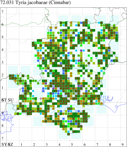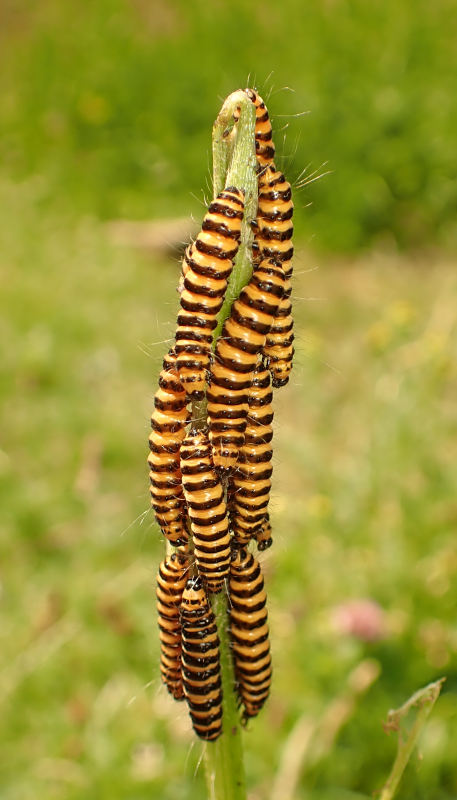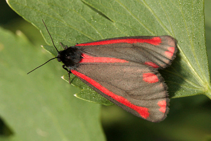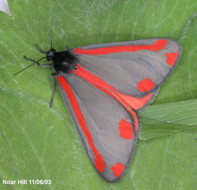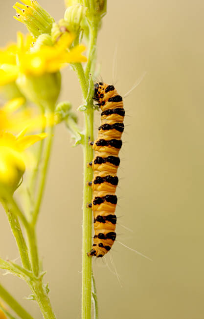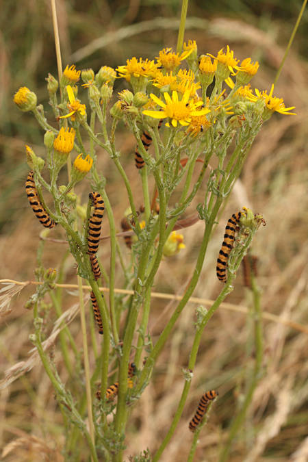 Common on grassland, sand-dunes, heathland, gardens and woodland rides throughout much of England and Wales, rare in Scotland, a species of conservation concern under the UK Biodiversity Action Plan. In Hampshire and on the Isle of Wight widespread and usually common, especially in the larval stage, on dunes, downs, open woodland and other places where the foodplant grows. Wingspan 35-45 mm. Unmistakable. Larva feeds on Common Ragwort, occasionally also on Oxford Ragwort, over-wintering as a pupa.