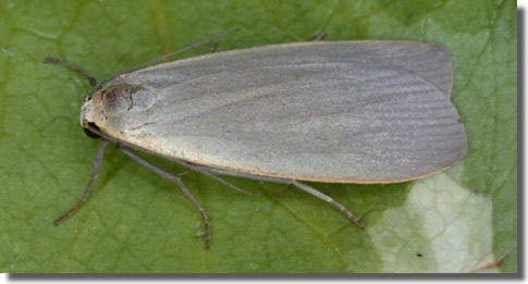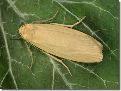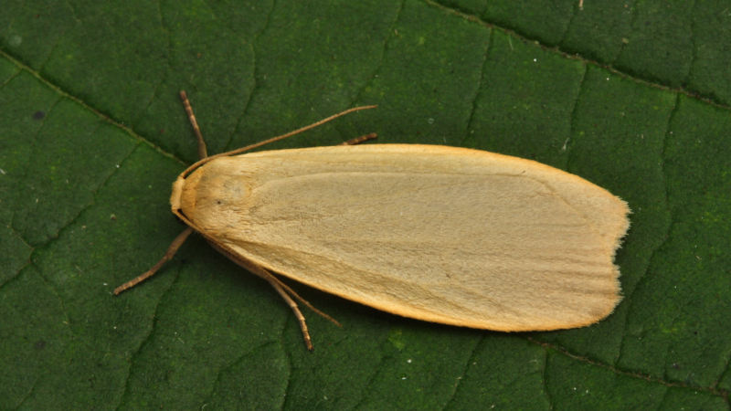 Buff Footman E. depressa by characteristic wing-shape. Larva feeds on various lichens growing on deciduous trees and bushes.